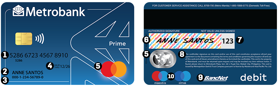 - Card number -- This identifies your card as a Metrobank-issued Mastercard Debit/Prepaid Card.